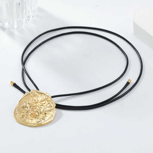 Vintage Relief Flower Medal Necklace – 2024 Geometric Pendant on Adjustable Long Cord