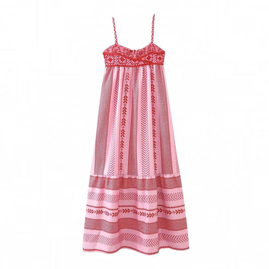 Women's Embroidered A-Line Dress – Elegant Sleeveless Statement Style