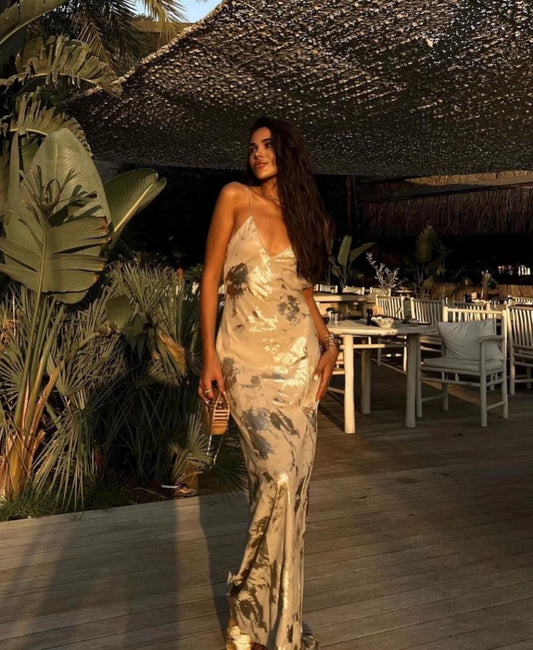 Women's Metallic Sequin Dress – Elegant A-Line Partywear with Spaghetti Straps