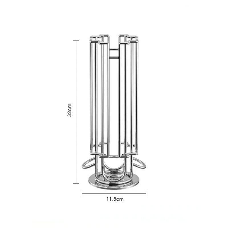 Organise your coffee station with the Rotating Coffee Capsule Holder, a sleek metal stand designed to keep your favourite pods beautifully displayed and within reach.