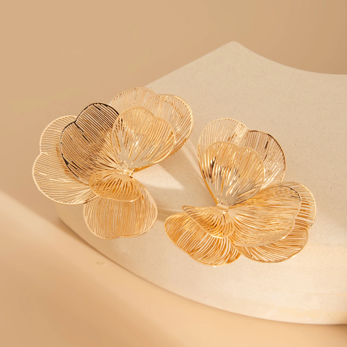 Los pendientes Golden Bloom combinan una feminidad refinada con una fuerza discreta. Su diseño de pétalos esculpidos y su acabado dorado pulido crean un look atemporal y audaz, perfecto para mujeres que lideran con sutil confianza.