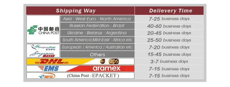 Deliveries within the UK typically take 4 to 7 working days, while deliveries to other destinations may take 7 to 10 working days.