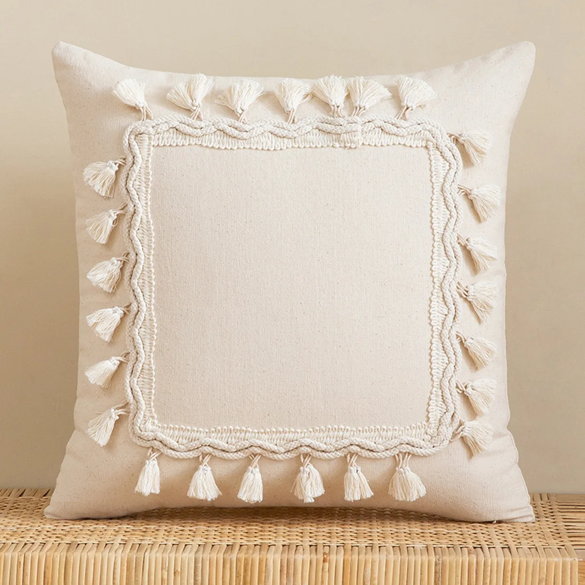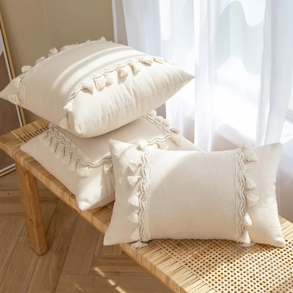 Woven Calm: Tassel Cotton-Linen Pillow Cover