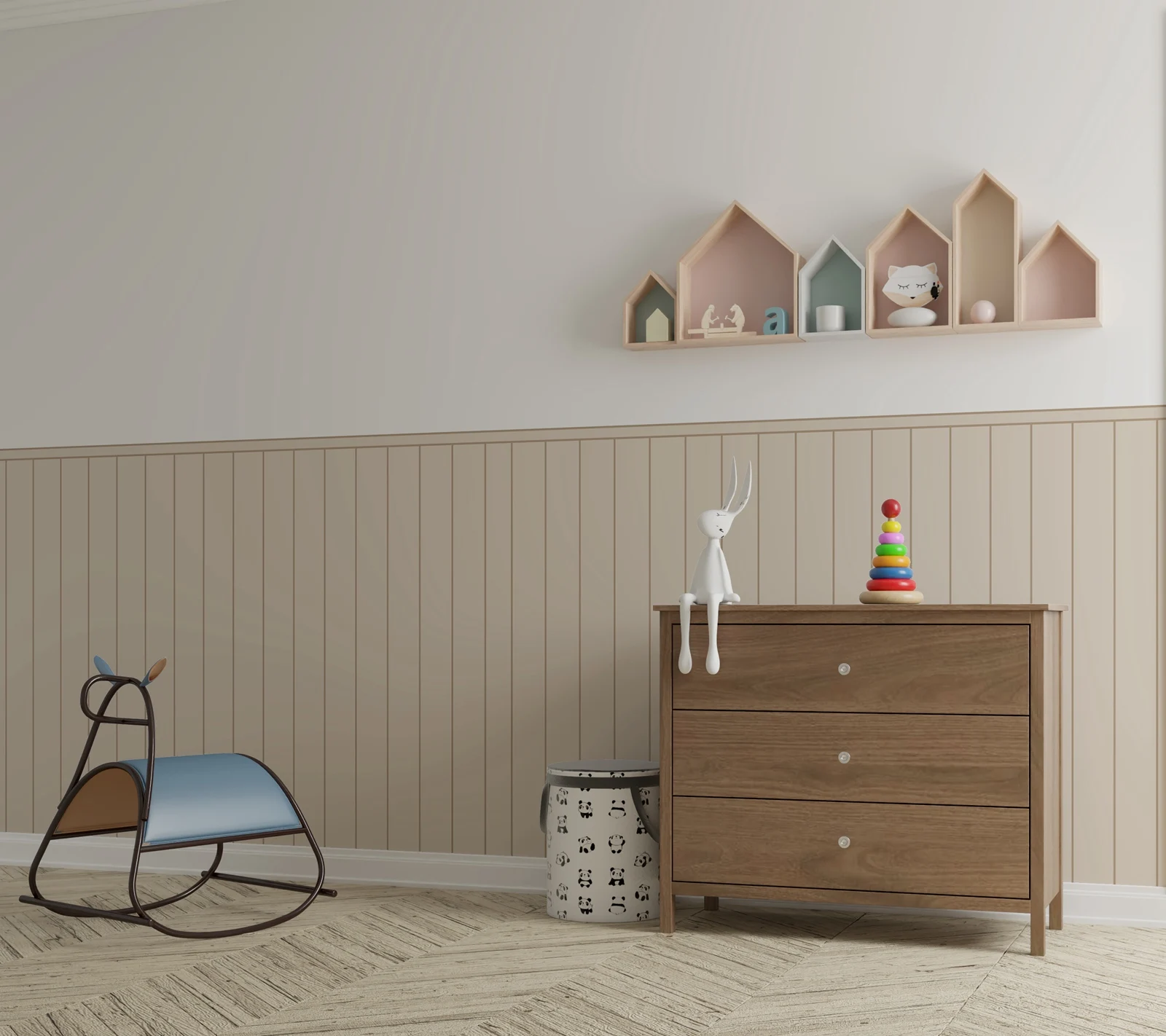 Create a cozy and stylish atmosphere with our Beige Wall Panel Wallpaper. Perfect for kids’ rooms, playrooms, or even modern living spaces, this wallpaper offers the timeless charm of half-wall paneling without the need for carpentry. Available in Peel & Stick self-adhesive for quick DIY or Traditional Unpasted for a classic installation.
