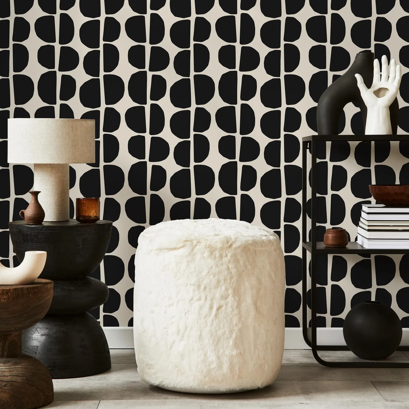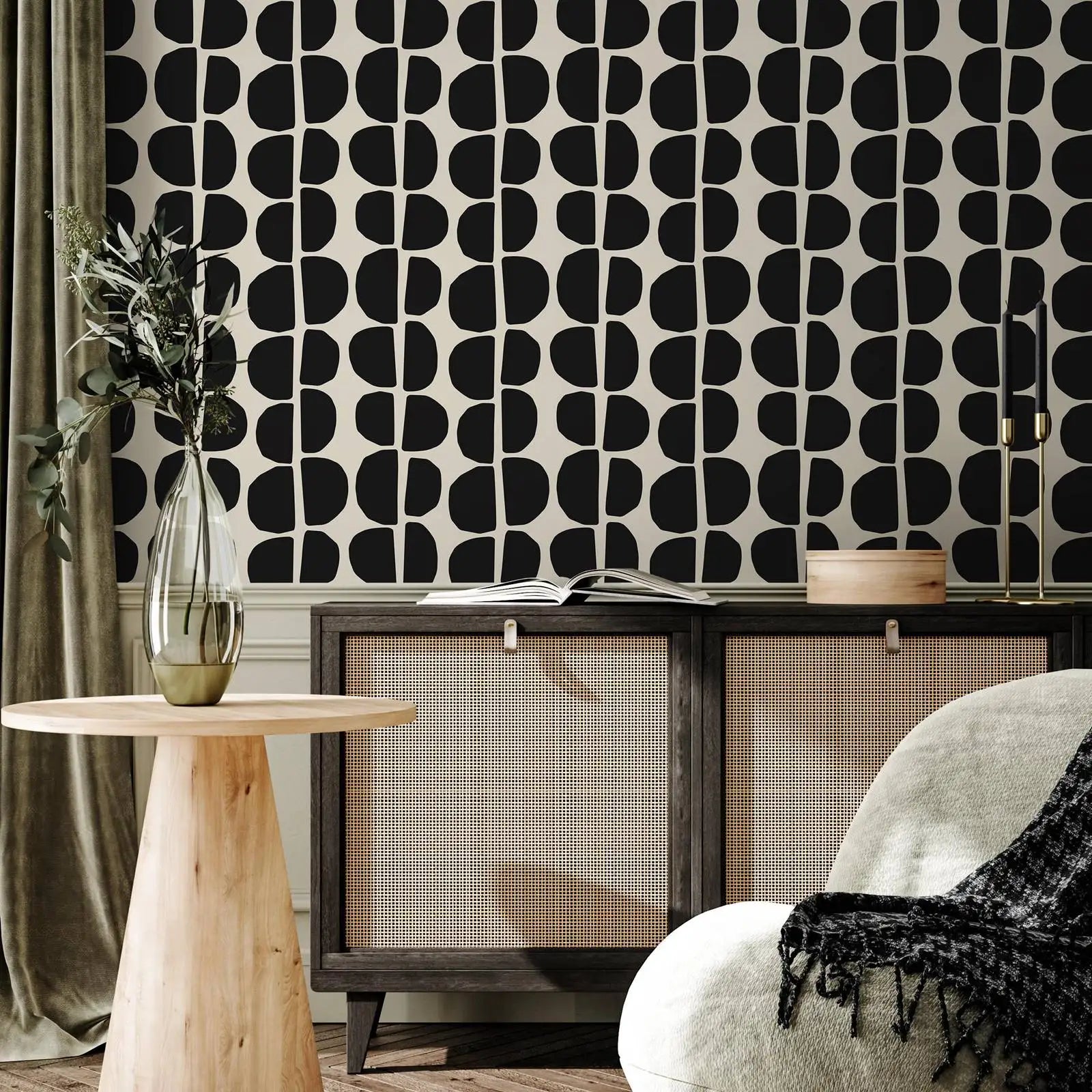Black Geometric Wallpaper – Modern Style, Peel & Stick Removable or Traditional Unpasted