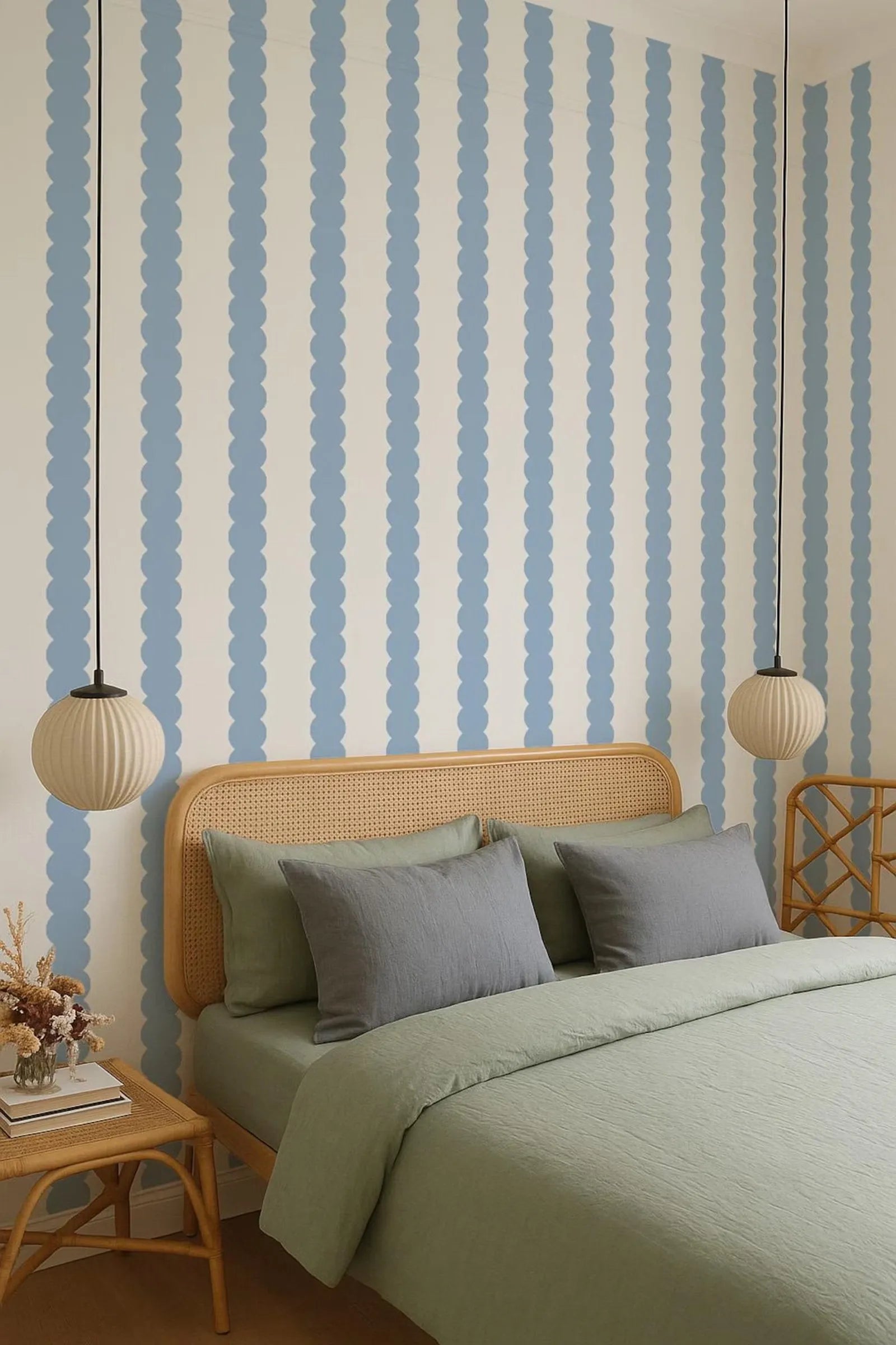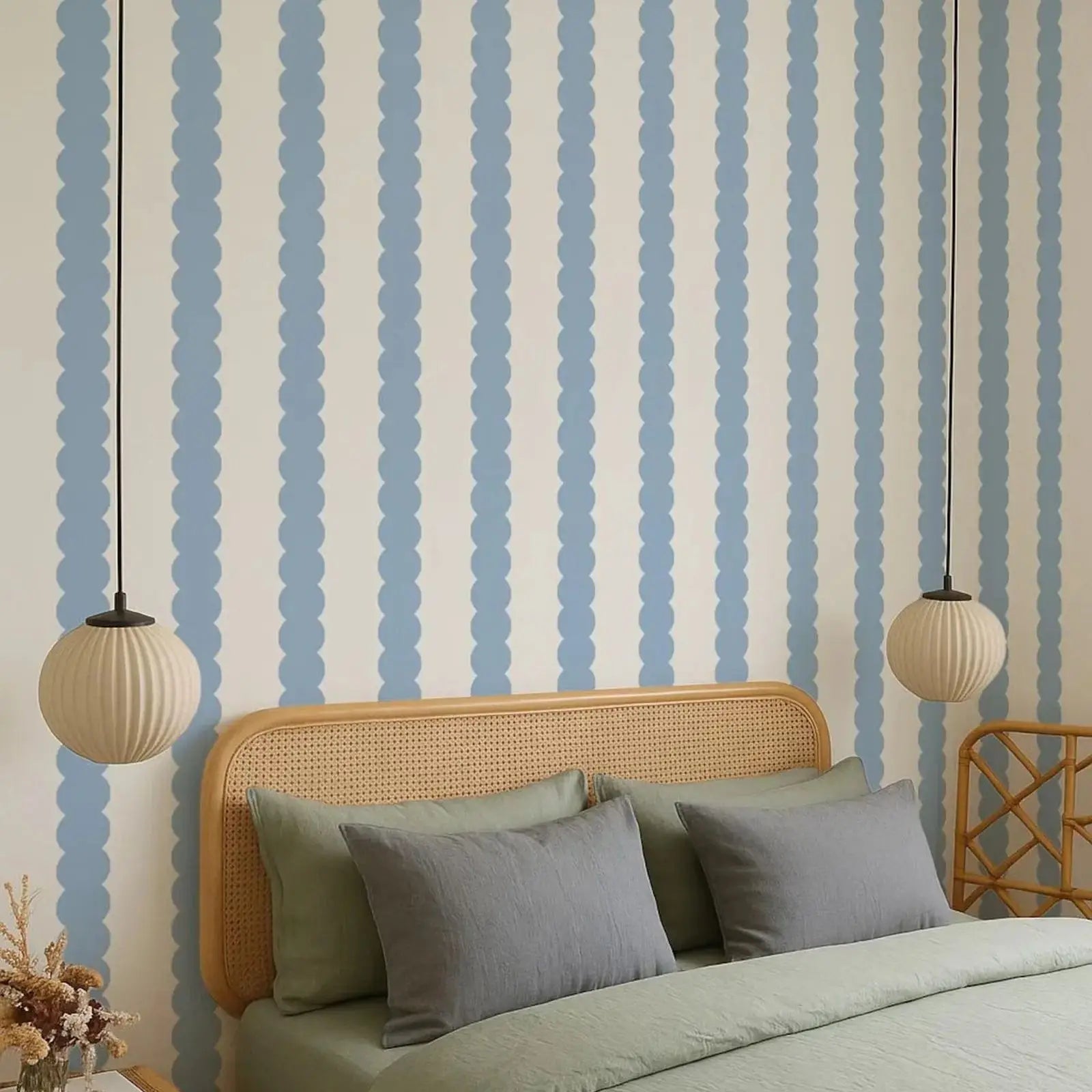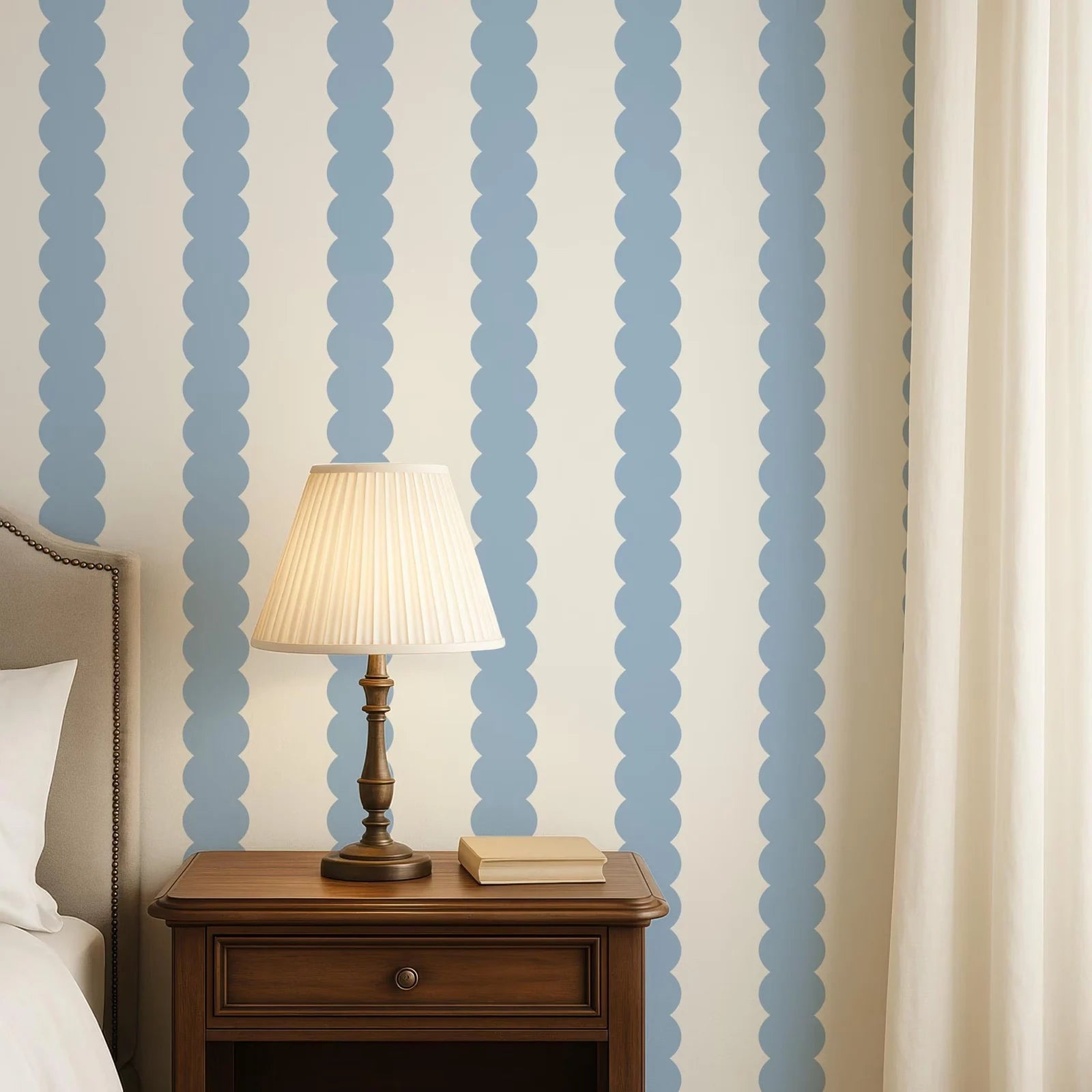 Blue Abstract Bubble Lines Wallpaper – Peel & Stick Removable, Scallop Stripe Blue Modern Mural, Tradition Unpasted Papers