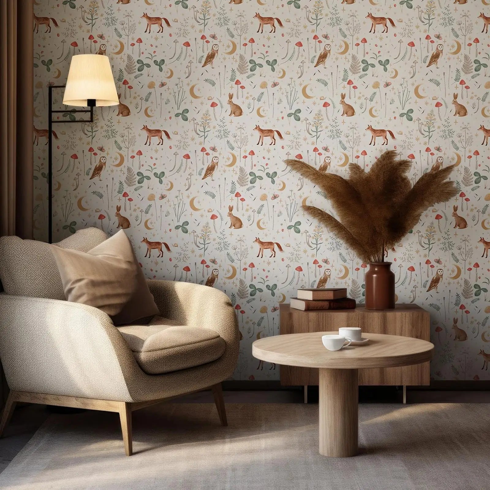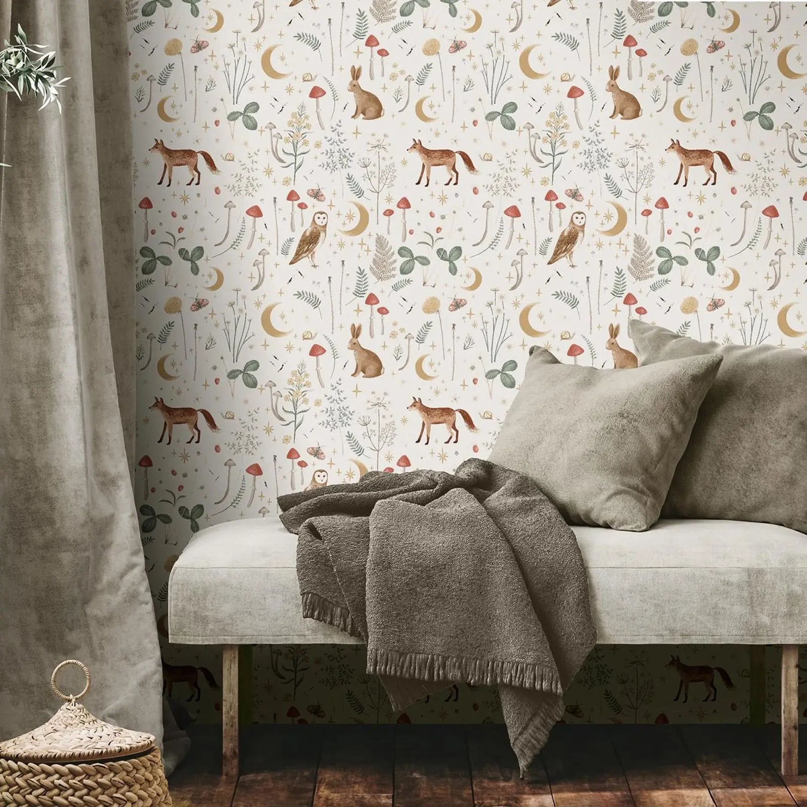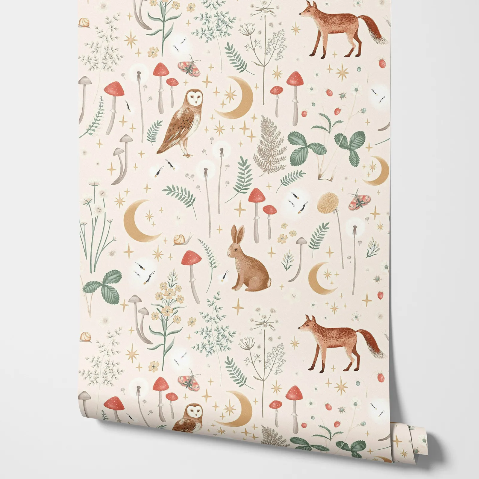 Step into a magical woodland world with our Enchanted Twilight Natural Wallpaper. Featuring delicate floral motifs, woodland animals, and a twilight-inspired palette, this wallpaper is the perfect choice for nurseries, trendy playrooms, or as a cozy feature wall. Available in Peel & Stick self-adhesive for quick decorating or Traditional Unpasted for a timeless finish.