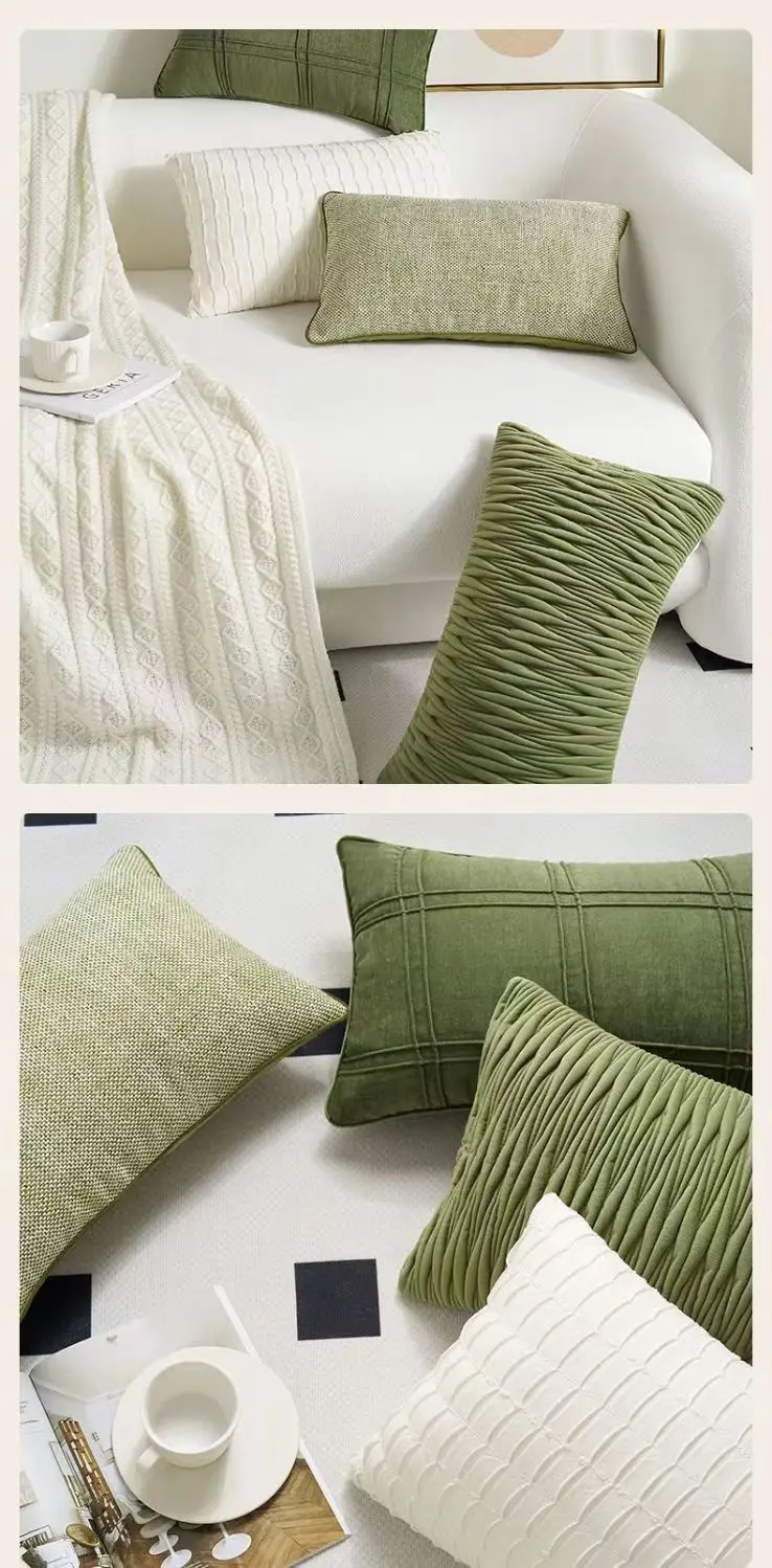 Designed with a refined Nordic sensibility, this decorative piece blends deep green tones with geometric texturas e tecidos de toque aveludado—um convite visual à tranquilidade e ao conforto moderno.