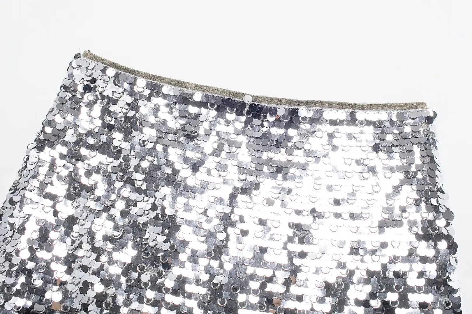 Step into the spotlight with this luxurious sequin sleeveless vest, perfect for layering over dresses or tops for an instant upgrade in shine. With a tailored fit and open-stitch design, this waistcoat brings elegance and edge to any autumn or winter look.