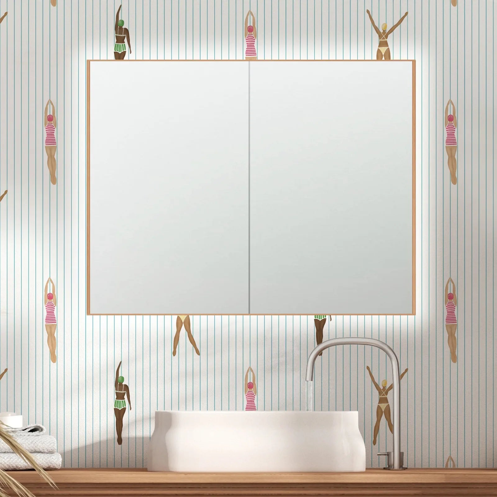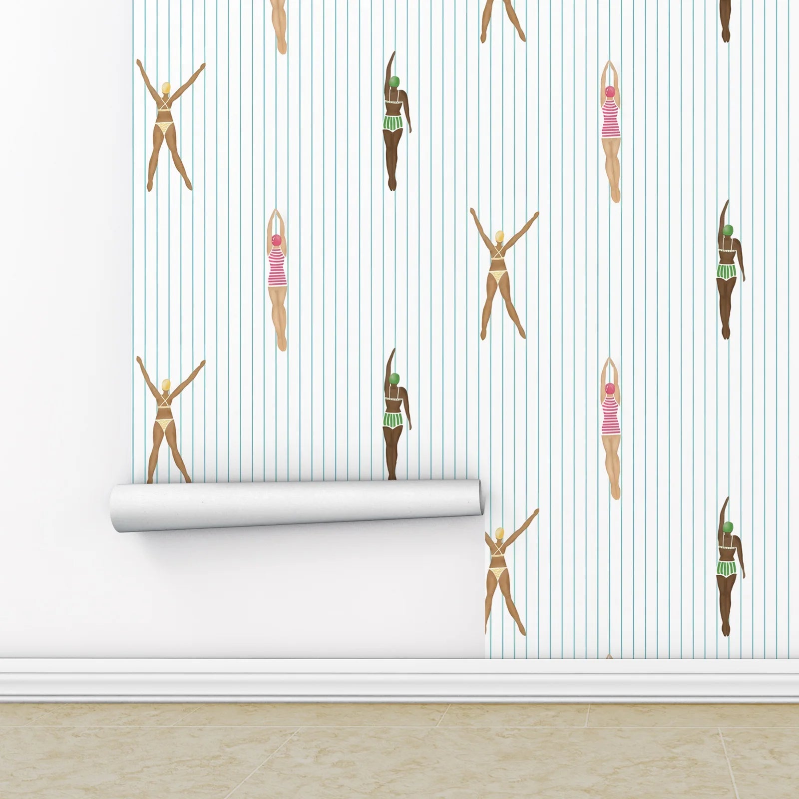 Peel and Stick Swimmers Wallpaper – Retro Floral Swimmer Design, Vintage Removable Wall Covering