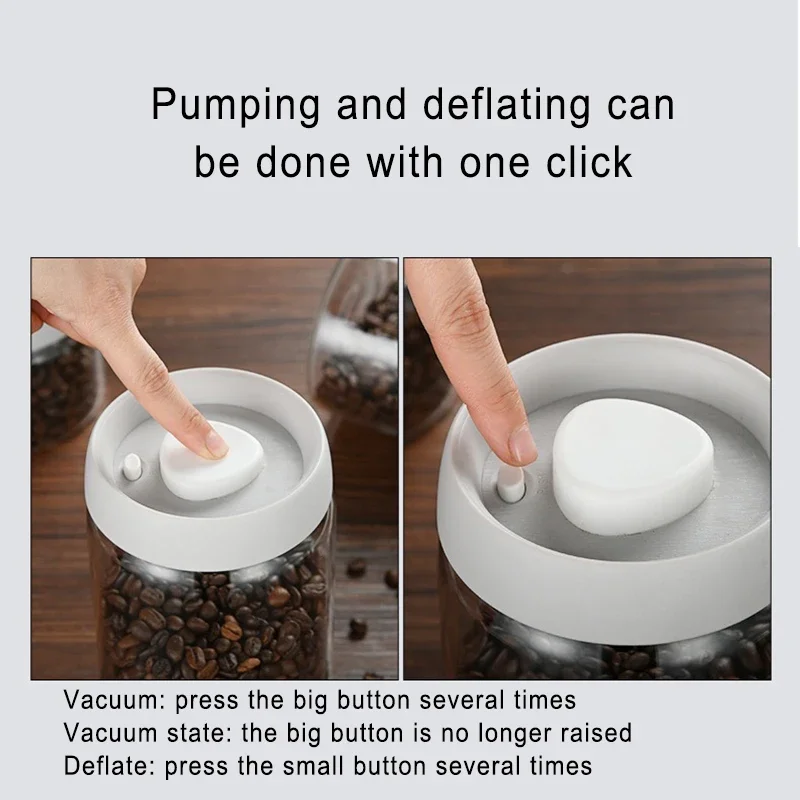 Press-Type Coffee Vacuum Storage Jar – Airtight Glass Container for Coffee Beans, Tea & Kitchen Storage
