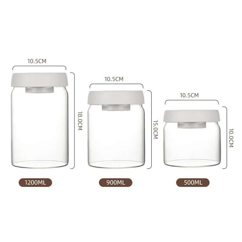 Crafted from heat-resistant glass and fitted with a smart press-type vacuum lid, it keeps coffee beans, tea leaves, or dried goods fresh and aromatic for longer.