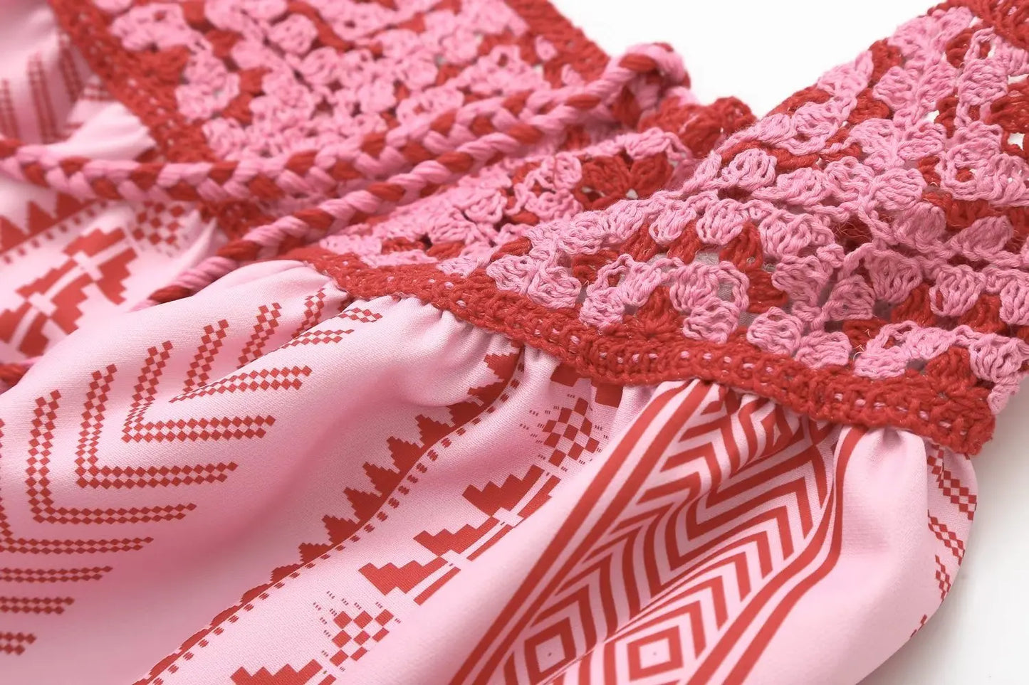 This ankle-length striped dress blends elegance with a touch of retro flair. Featuring delicate hook flower hollow details and a soft A-line silhouette, it’s a refined choice for beach parties, holidays, or chic casual looks with year-round appeal.