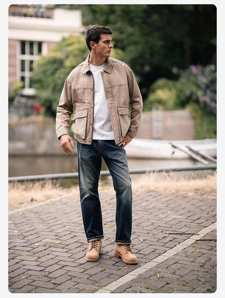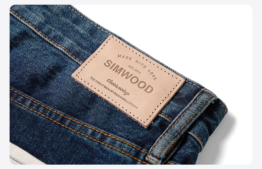 SIMWOOD 2025 Spring New loose Straight 13.5oz Fabric Washed Vintage Jeans Men Classical Plus Size Denim Trousers