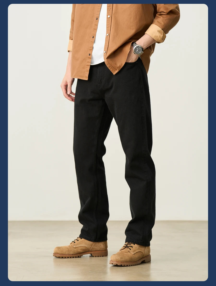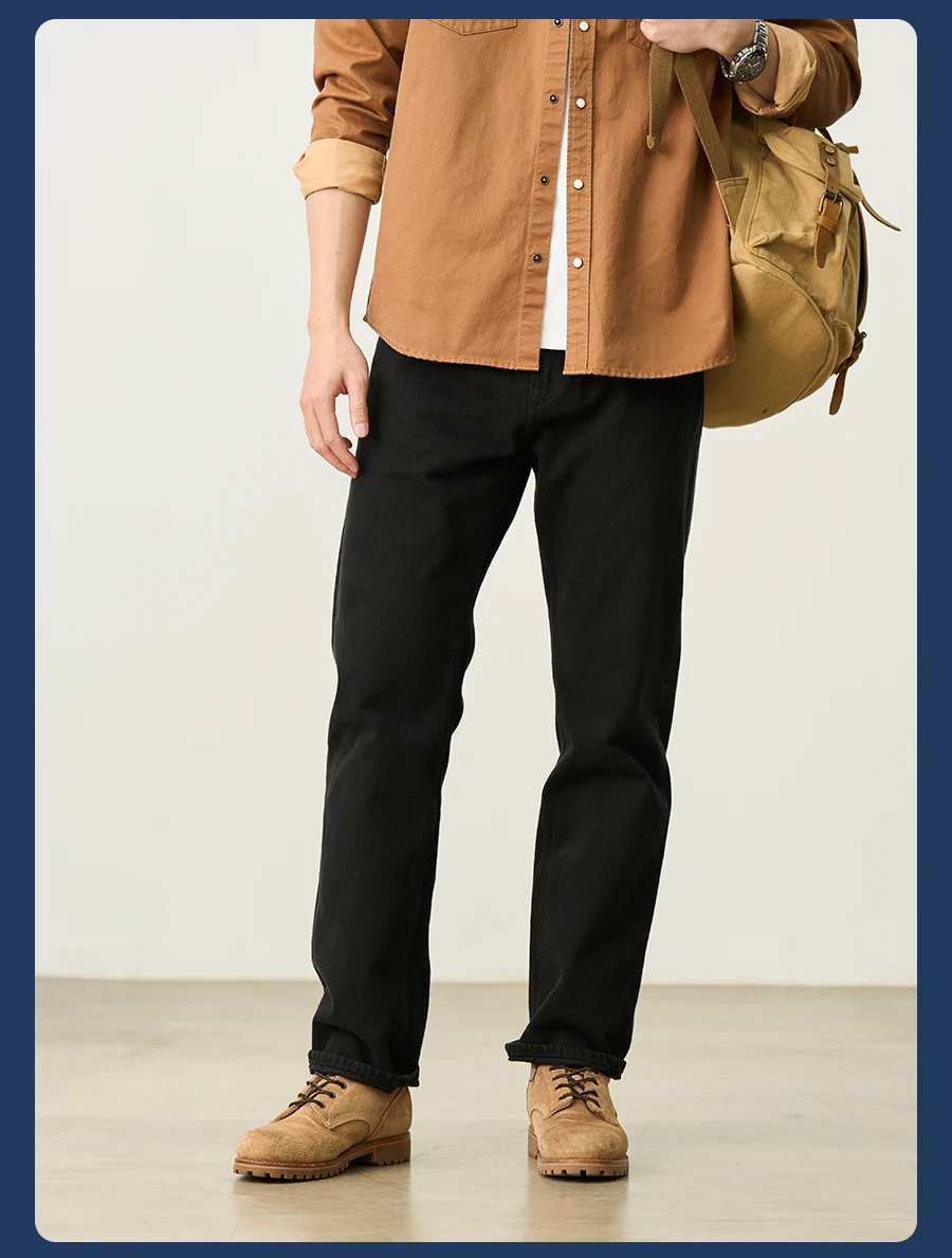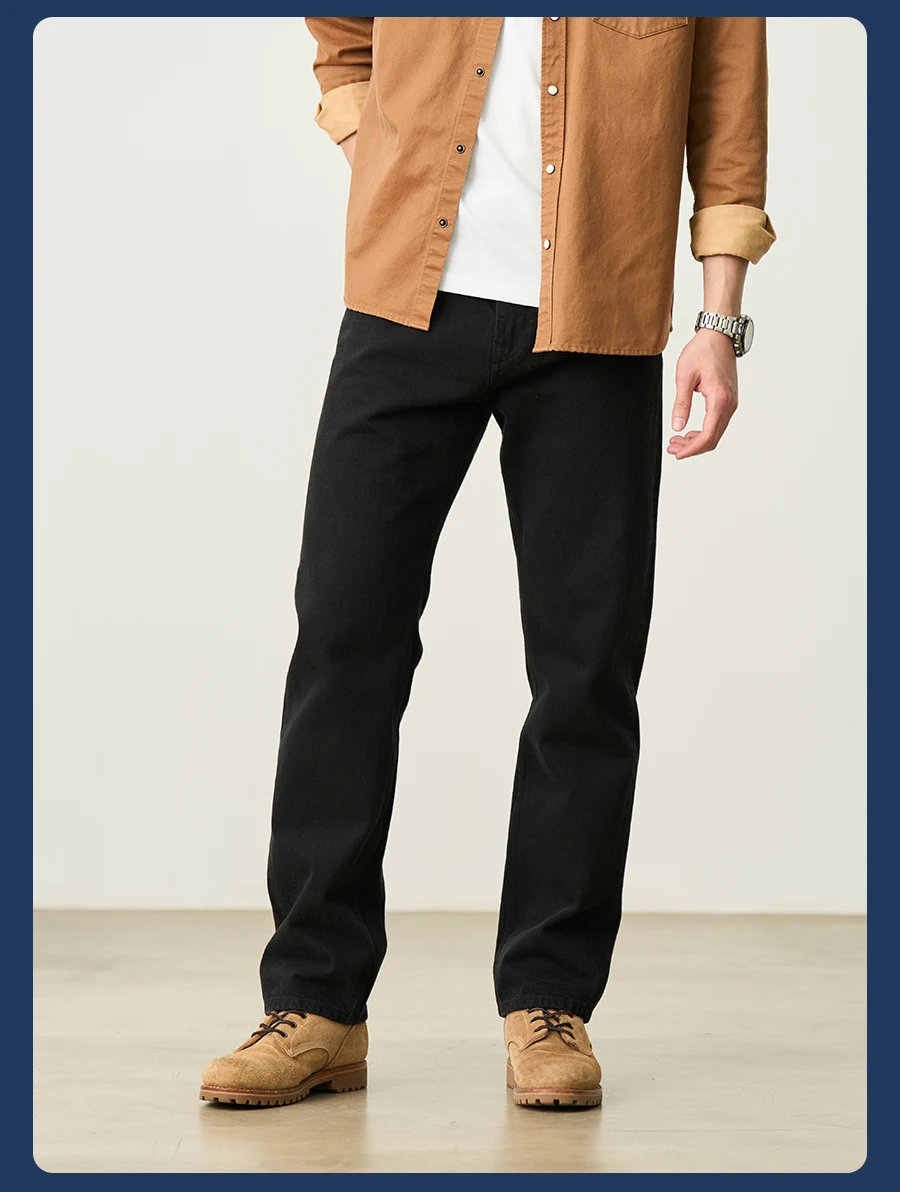 Men's Washed Vintage Straight Jeans – 13.8oz Softened Denim, Four-Season Fit