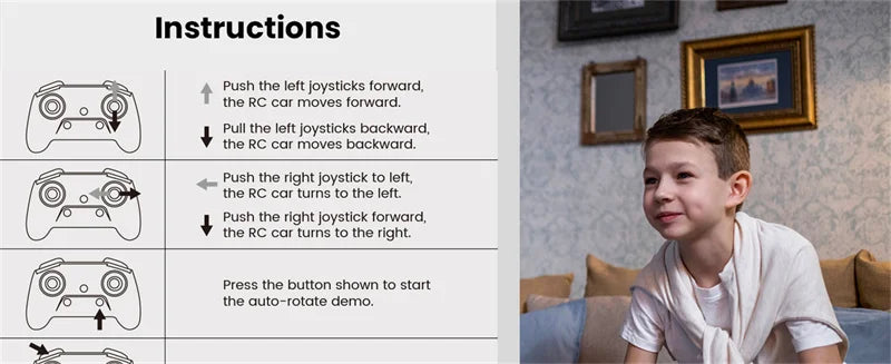 • Controls: 2.4GHz, MODE 1, 4 channels | Range: ~30 m