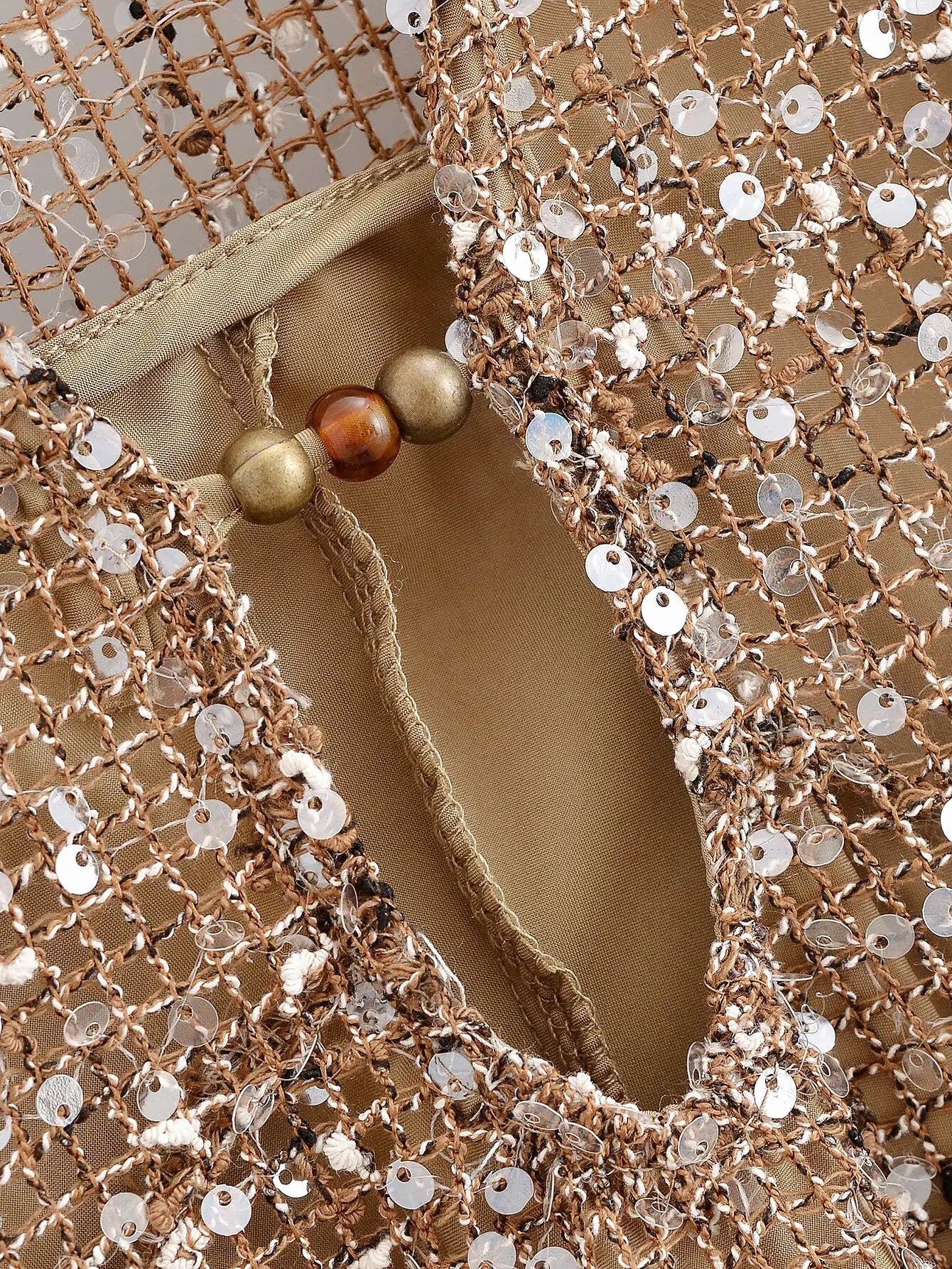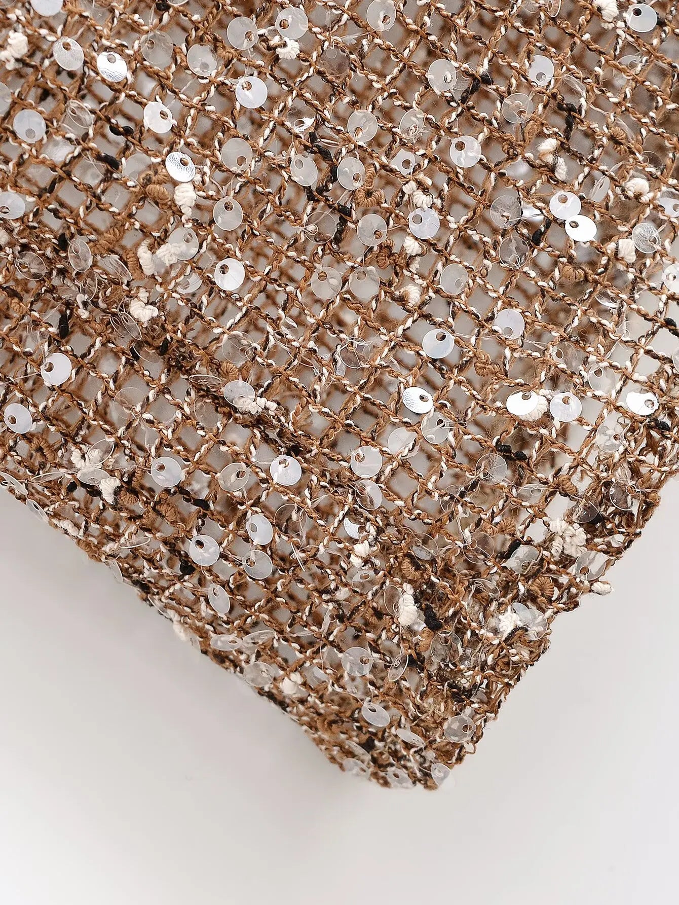 Women's Sequin-Embellished V-Neck Midi Dress – Lightweight Elegance for Summer