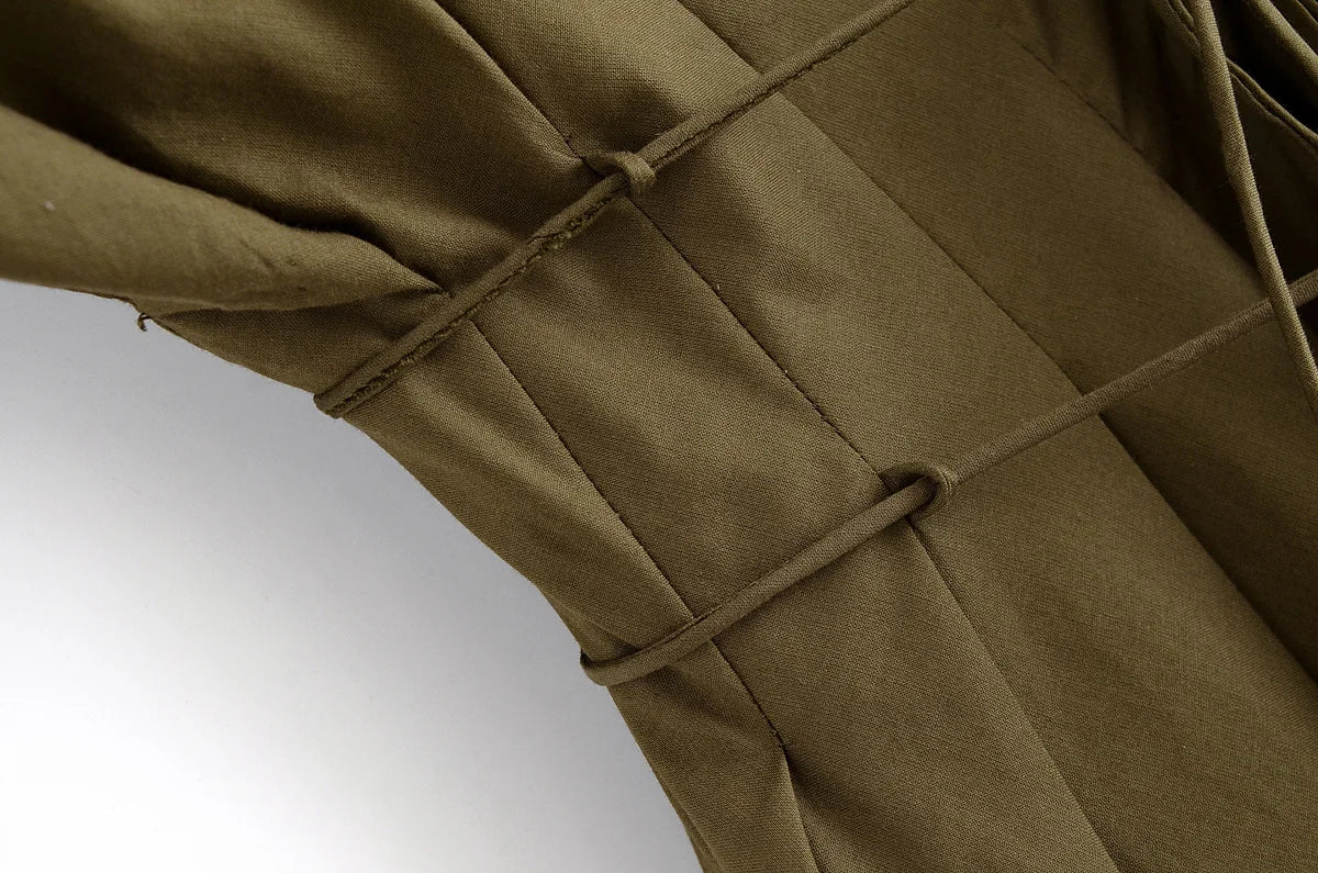 Women's V-Neck Lace-Up Midi Dress – Elegant, Backless & Summer-Ready