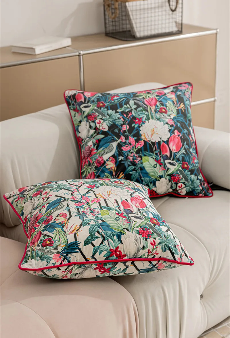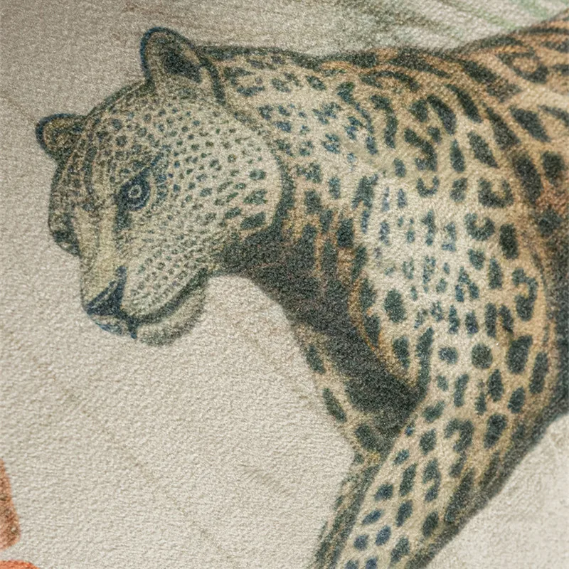 Vibrant Jungle Theme: Featuring a striking leopard surrounded by a riot of tropical colors, this pillow cover captures the essence of summer jungles and exotic safaris.