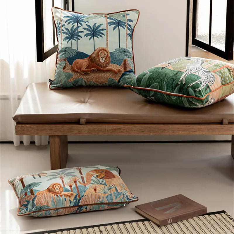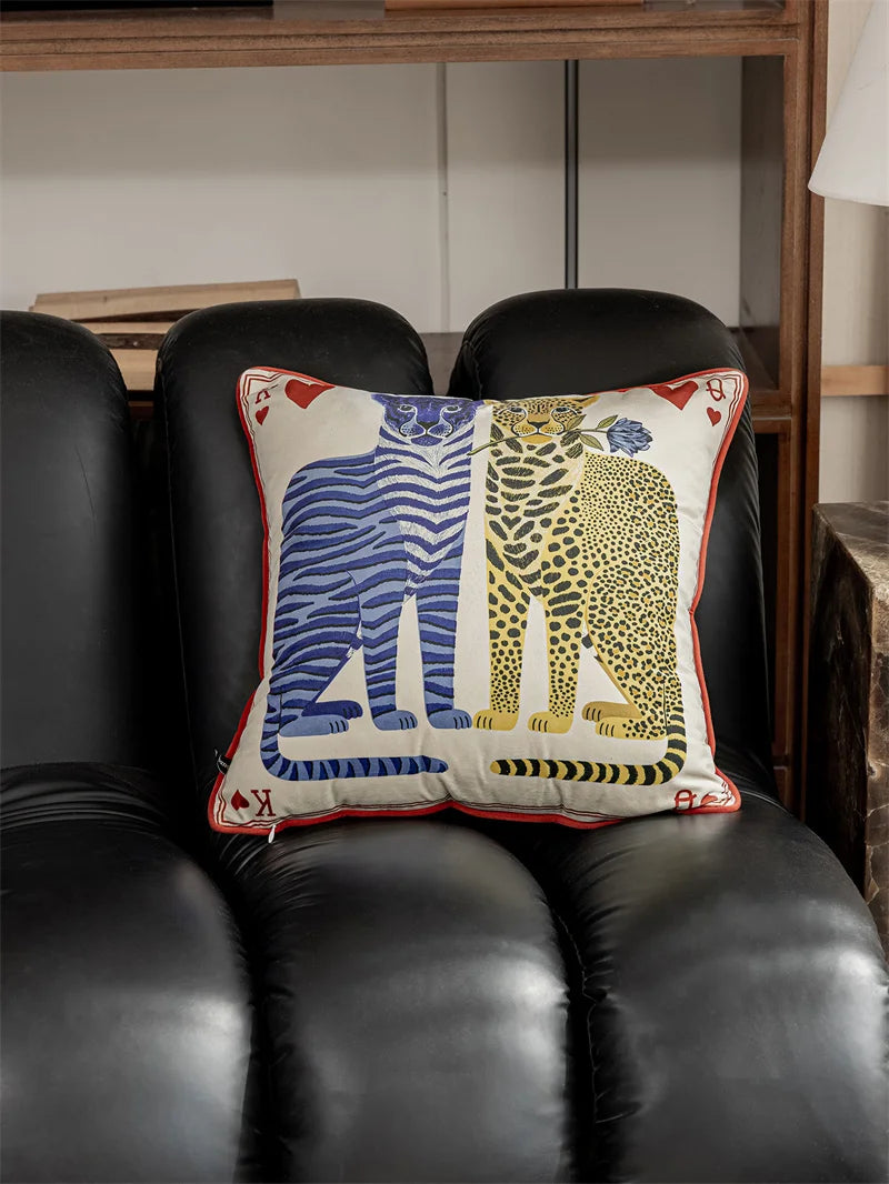Dramatic Accent Piece: The bold animal print paired with vivid floral patterns creates an eye-catching statement in any room, ideal for a splash of summer vibrancy.