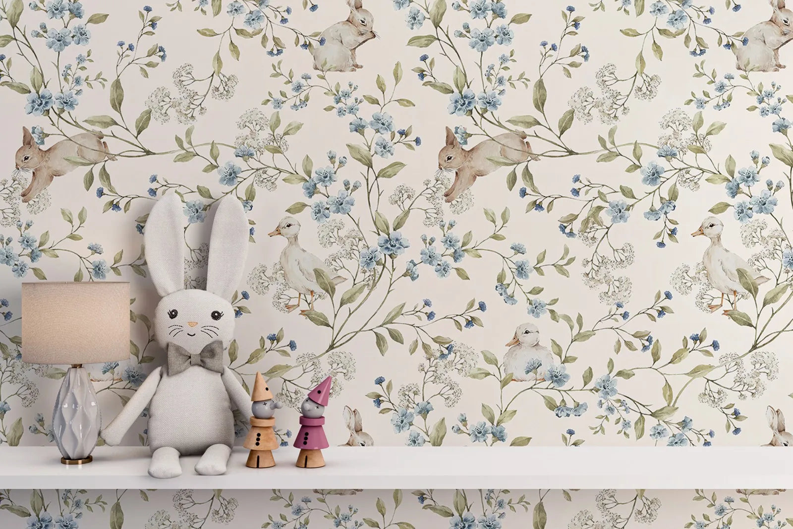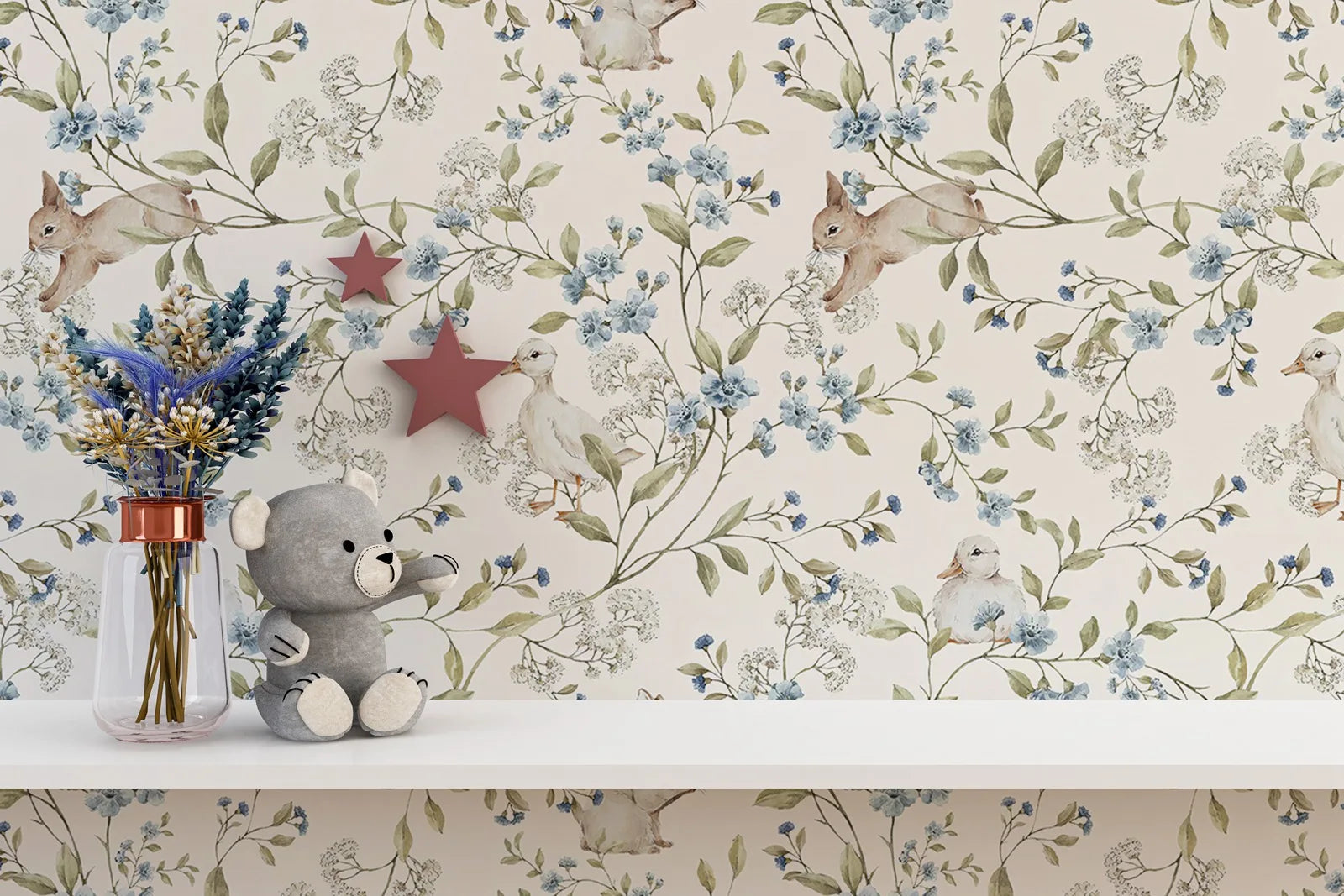 Bring whimsical beauty into your home with our Vintage Flower & Rabbit Wallpaper. Featuring delicate flowers, birds, and cute rabbits, this design is perfect for nurseries, children’s rooms, or cozy family spaces. Available in Peel & Stick self-adhesive for easy DIY projects or Traditional Unpasted for a classic finish.