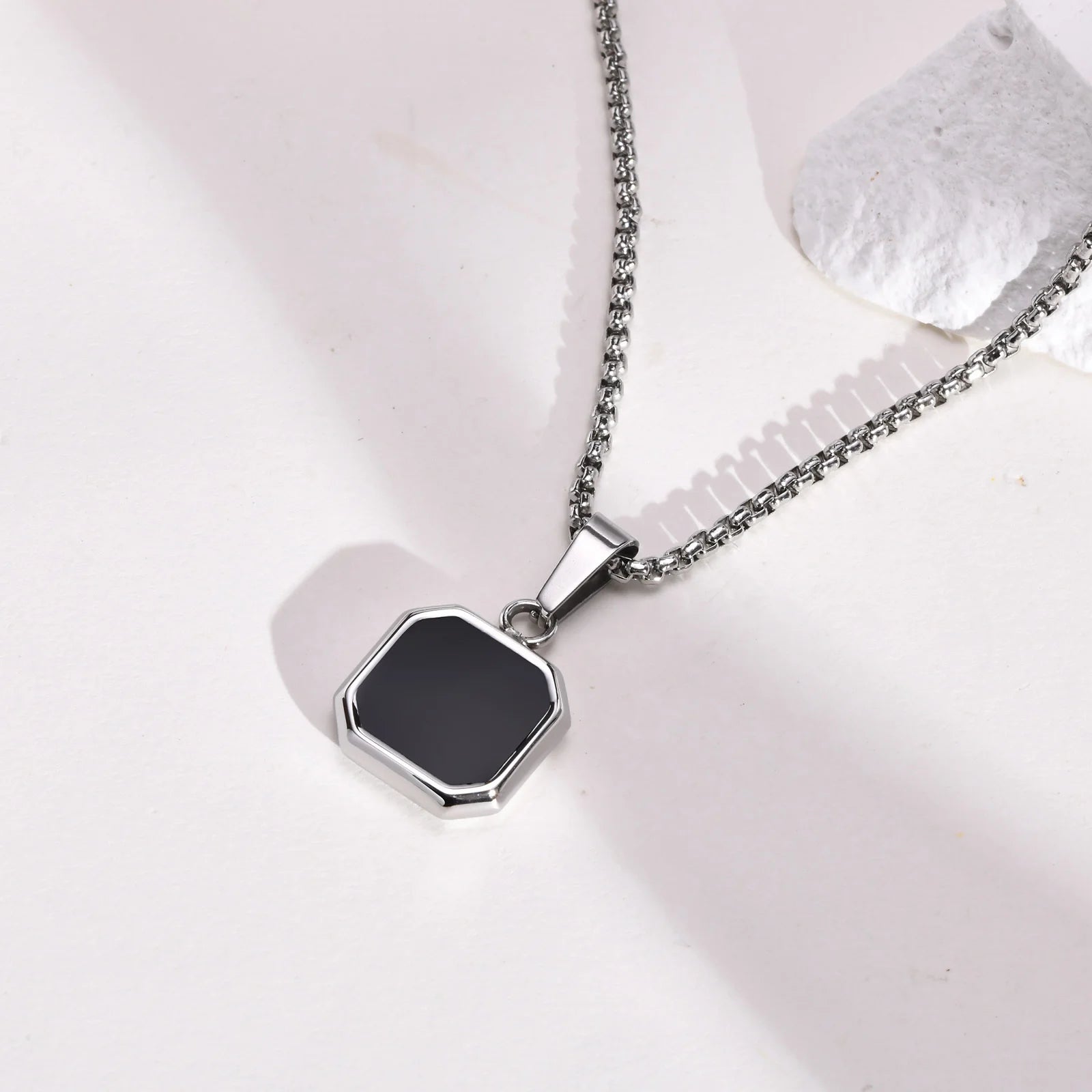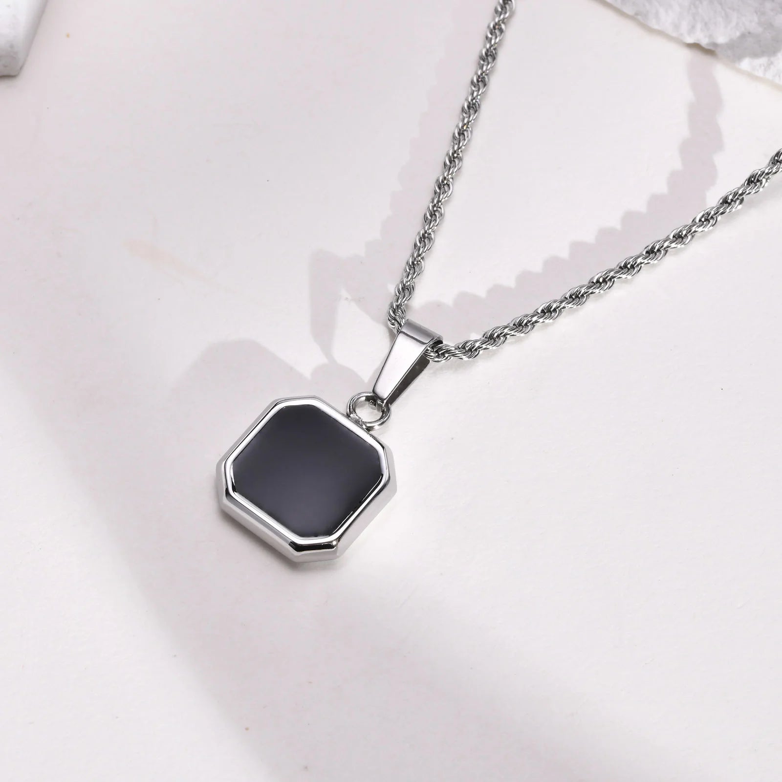 Grid Mark: Geometric Enamel Square Pendant Necklace for Men