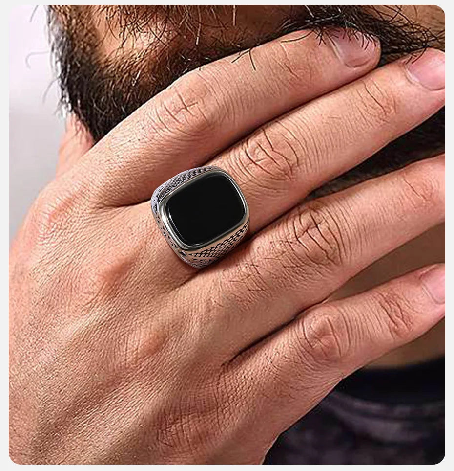 Vnox Rock Punk: Black Onyx Stainless Steel Signet Ring for Men – Bold & Timeless Statement